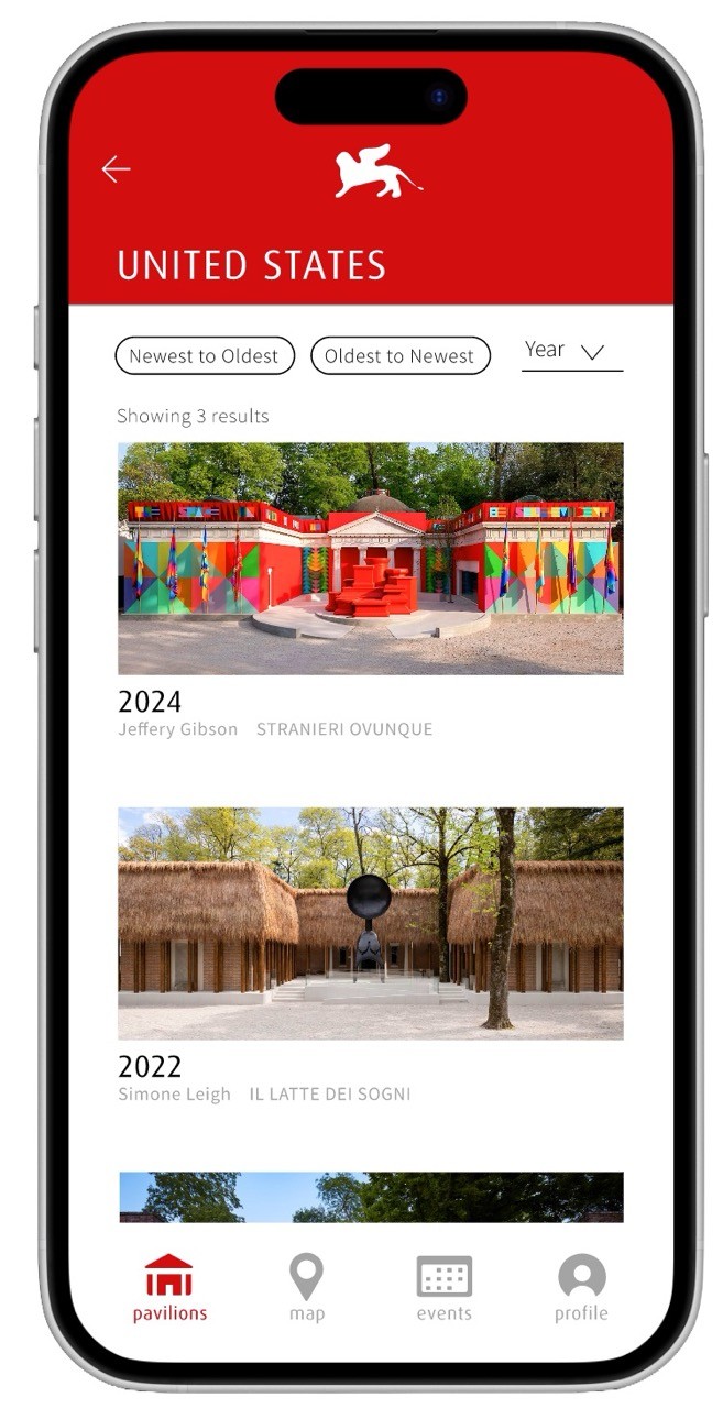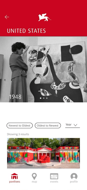 I added a feature that allows people to explore past exhibitions in each pavilion. This connects visitors to the history of the event and understand the context of the show that they are attending.