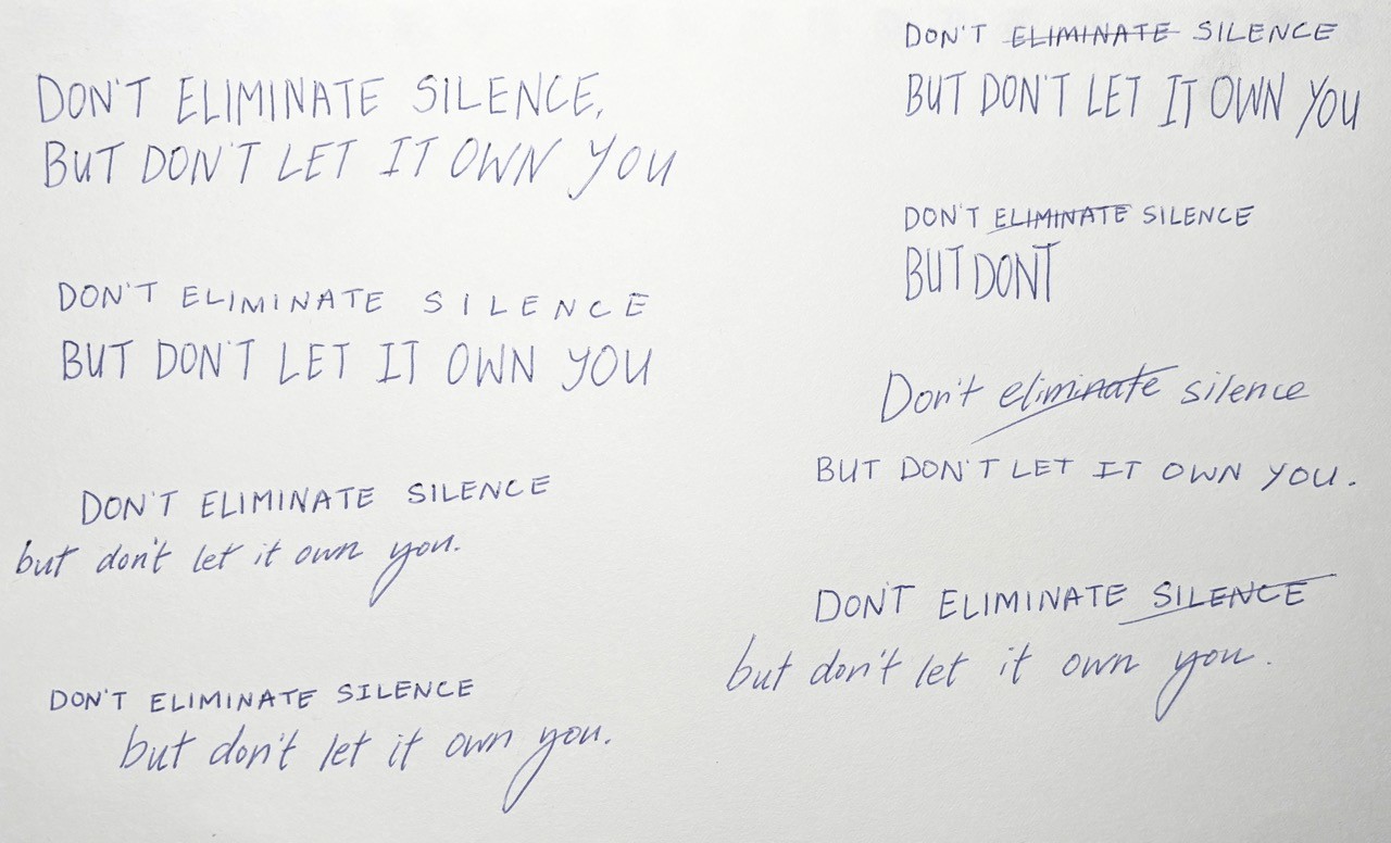 I thought about communicating the decision to stay silent through a series of scenes: someone writing a letter, becoming frustrated, and eventually crumbling up the paper. I was drawn to simple typographic treatments that made it feel like the lines of text were falling or being pushed apart.