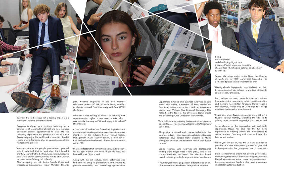 The author for this story wanted to highlight different business fraternities on campus, incorporating interviews from current students.